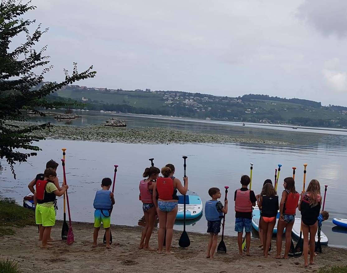 Après des explications et des essais, une sortie sur le lac en stand up paddle sera organisée. Le stand up paddle est un sport nautique qui consiste à se tenir debout sur une planche flottante sur laquelle tu te déplaces à l'aide d'une pagaie. Vous pouvez aller seul ou à deux sur la planche.